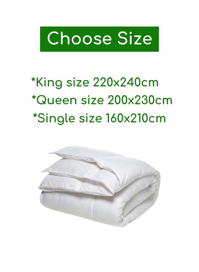 Choose Size: King size 220*240cm. Queen size 200*230cm. Single size 160*210cm. Vacuum packed - 1 Pc. duvet, please allow 24 hours to decompress. Made with 100% hollow fiber filling (2.5 kg fill weight) and brushed embossed microfiber 105 GSM top for exceptional softness and strength. Luna Home basic duvet box stitching and piped edges prevent fill from shifting for an even layer of thickness throughout. Comfortable, regular duvet or down-alternative bed comforter that you can use with a duvet cover. It, is the perfect choice for all seasons, providing you with comfort and coziness throughout the year. It is made specially for easy erasing in a conventional washing machine. Hollow fiber fill provides maximum comfort, makes the duvet breathable.Care tips: Machine wash at 30 degrees, after place them in a tumble dryer on low heat or air cycle for 10 minutes. Shake well to break up wet clumps of filling and finish drying.