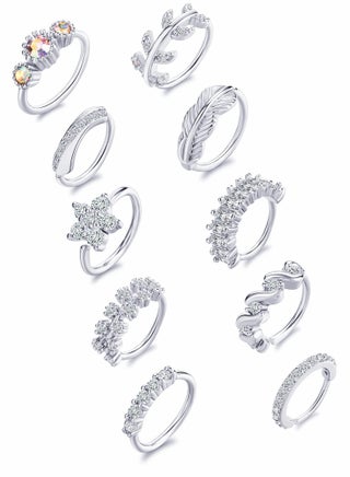 【Nose Ring Set】includes 10 pieces of hoop nose rings: flower/feather/leather/CZ, etc. 10 different styles; suitable for your daily wear, making you more elegant and charming