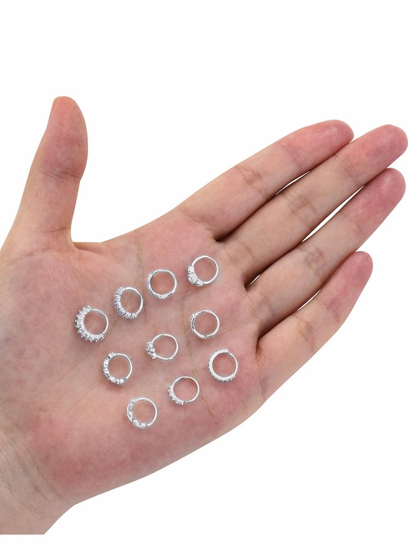 Nose Ring Hoop, Zircon Nose Ring Jewelry Decoration, Paved Mosaic Feather Cartilage Earrings Pierced 20G Nose Rings for Men and Women (10 Pcs, Silver)