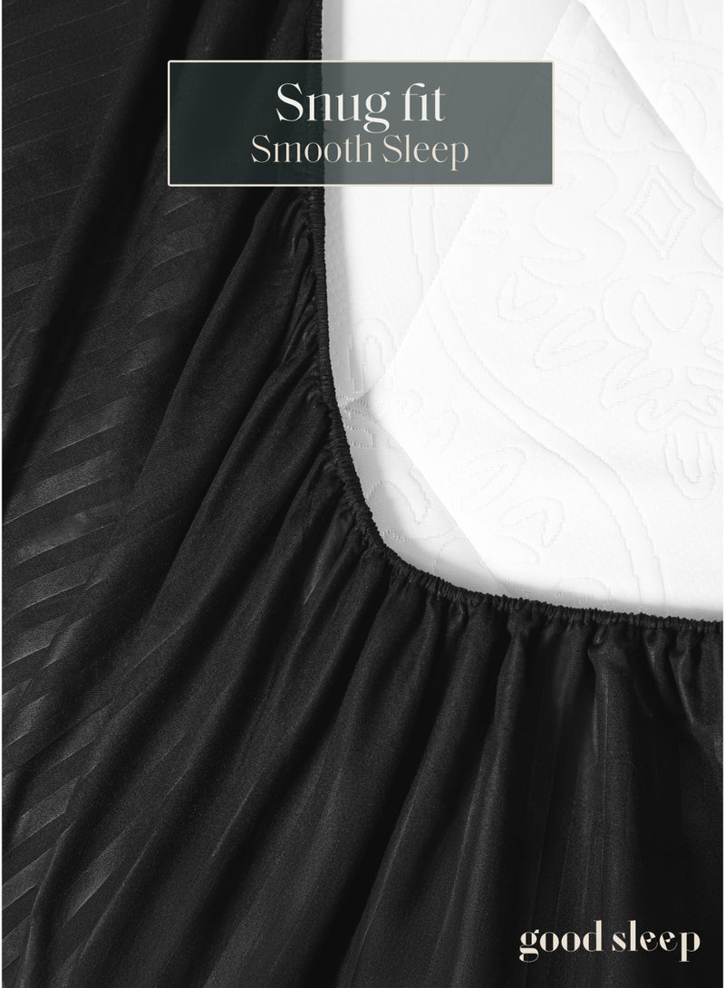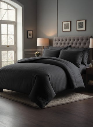 ابدأ أساس سريرك الأنيق مع طقم لحاف سرير فاخر مخطط باللون الأسود – حيث تلتقي الراحة بالفخامة في مزيج أنيق وجذاب.