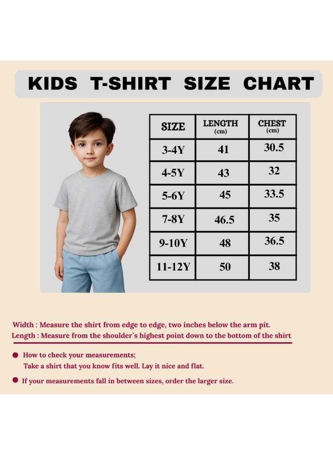 يعد تي شيرت الأطفال ذو الرقبة المستديرة أحد أكثر القمصان راحة التي سترتديها على الإطلاق. نسيج مطاطي خفيف الوزن وناعم وجيد التهوية ليمنحك شعورًا رائعًا في الصيف الحار. تي شيرت قصير الأكمام لا يناسب مقاسك بشكل ضيق جدًا وليس ضخمًا جدًا. يتم قياس كل تي شيرت يدويًا لضمان حصولك على المقاس الصحيح، يرجى الرجوع إلى الرسم البياني. منتجاتنا مصنوعة من القطن بنسبة 100% ولا تحتوي على مواد ضارة.