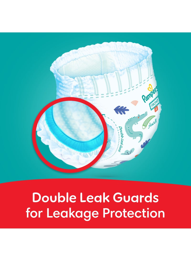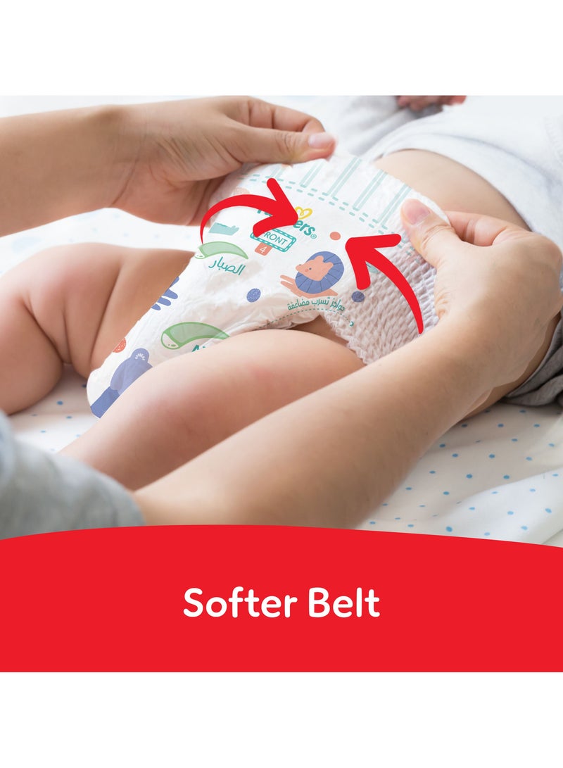 تتميز حفاضات بنطلون بامبرز الجديدة والمحسّنة لحماية الطفح مع +50% لوشن الألوة فيرا بتقنية ملائمة بزاوية 360 درجة للحصول على ملاءمة أفضل وحماية من التسرب تصل إلى 100%. توفر الحواجز المزدوجة للتسرب حماية إضافية، بينما تضمن الأحزمة الأكثر نعومة الراحة والمغامرات اللامتناهية. تحافظ الورقة الخلفية المطبوعة بتصاميم جديدة على جفاف الحفاض. اختيار حفاضة ملائمة مع طبقات إضافية من الحماية يقلل من التسربات وطفح الحفاض، مما يوفر لبشرة طفلك الحماية التي تستحقها. كيفية استخدام حفاضات بنطلون بامبرز: وضعها: 1. أدخل ساقي طفلك في الحفاضة. 2. اسحب الحفاضة لأعلى. 3. تأكد من أن حواف الساق موجهة للخارج. إزالتها: 1. مزق من الجانبين. 2. لفها وأغلقها قبل التخلص منها. 3. نظف طفلك وضع حفاضة جديدة. الأسئلة الشائعة: ما هو العمر الذي يرتدي فيه حجم 4 بامبرز؟ يناسب الأطفال من 9-14 كجم. كم عدد حفاضات حجم 4 التي يحتاجها الطفل في اليوم؟ عادةً، 5-6، حسب النظام الغذائي والتكرار. هل يمكن أن تعالج الألوة فيرا طفح الحفاض؟ الألوة فيرا تهدئ التهيج وتعزز الشفاء. متى يجب الانتقال إلى حفاضات البنطلون؟ انتقل إلى حفاضات بامبرز عند 6 أشهر، عندما تجعل الزحف والتقلبات الحفاضات اللاصقة صعبة.
