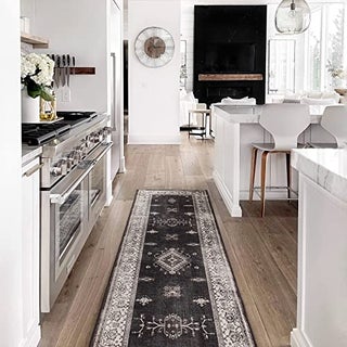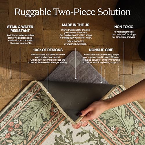 CLASSIC VINTAGE STYLE, MODERN RUG TECHNOLOGY: Our Verena Dark Wood Washable Area Rug features intricate gem-inspired patterns and dark brown tones that gives classic farmhouse and contemporary vibes. It offers comfort and practicality, making it a perfect addition to any space.. Machine Washable & Easy Maintenance – Toss our machine washable runner rugs in a standard washer for hassle-free cleaning. Made from recycled materials with non-toxic dyes, they are eco-friendly, pet-safe, and stylish.. Stain & Water-Resistant – Designed for homes with kids and pets, our runners rugs feature a stain-resistant, water-repellent barrier that protects against spills and messes. Ideal for kitchens, nurseries, playrooms, and high-traffic spaces.. Non-Slip & Secure – The latex-free rug pad grips hard surface floors to help keep your rug in place. These machine washable runner rugs for hallway, kitchen, living room, and entryway stay securely positioned even in high-traffic areas.. Low-Profile & Easy Fit – The 1/4-inch thick Standard Pad System is designed to fit seamlessly under doorways, entryways, kitchen and furniture, while the chenille fabric brings a touch of softness to complement its durability for long-lasting support. Rug cover made in the USA with imported materials; rug pad made in China. Colors may vary based on screen settings—adjust brightness for the most accurate shade.