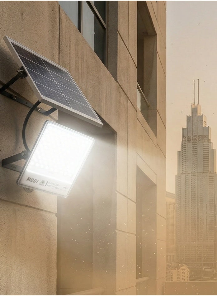 Illuminate your outdoor spaces with the powerful and reliable Modi Solar Flood Light 500W IP65 with Remote Control. This advanced lighting solution combines high brightness, eco-friendly solar power, and weather-resistant construction to provide optimal lighting in any environment. Whether you need to light up a large backyard, secure your property, or enhance your commercial space, this solar flood light is up to the task.