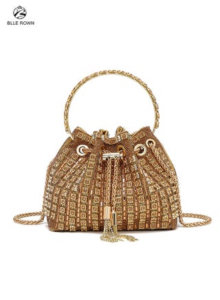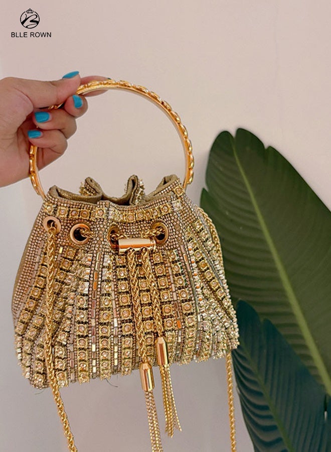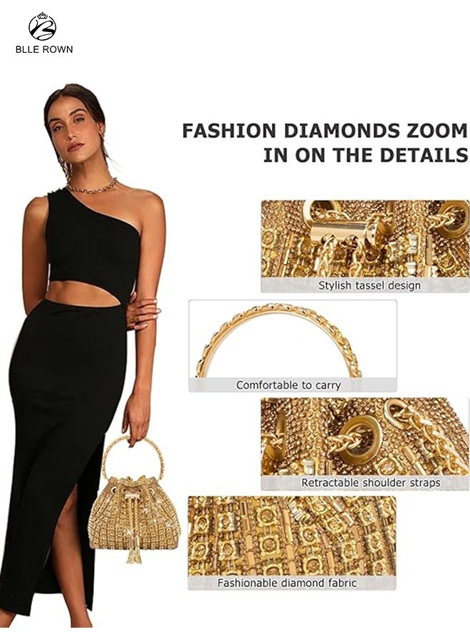 حقيبة يد نسائية فاخرة ذهبية متلألئة حقيبة يد نسائية فاخرة فاخرة للسيدات حقيبة سهرة أنيقة من الألماس مع حقيبة أزياء من حجر الراين مع سلسلة من أحجار الراين اللامعة لحقائب السيدات للسهرات لحفلات الزفاف
