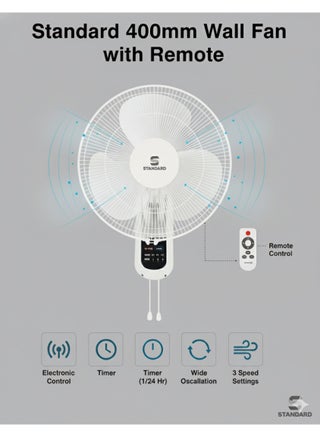 نقدم لكم مروحة الحائط القياسية سابر 16 بوصة - الحل الذكي للتبريد في أي مساحة حيث تكون المساحة الأرضية ذات قيمة عالية. تتميز هذه المروحة الحائطية عالية الأداء برأس مروحة 400 مم مدعوم بمحرك نحاسي قوي وموثوق 50 واط، والذي تم تصميمه لتحقيق أقصى حركة هواء وطول عمر استثنائي مع الحفاظ على مستوى تشغيل هادئ.