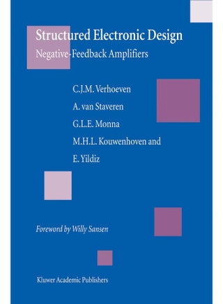 وصف الكتابAnalog design is one of the more difficult aspects of electrical engineering. The main reason is the apparently vague decisions an experienced designer makes in optimizing his circuit. To enable fresh designers, like students electrical engineering, to become acquainted with analog circuit design, structuring the analog design process is of utmost importance. Structured Electronic Design: Negative-Feedback Amplifiers presents a design methodology for negative-feedback amplifiers. The design methodology enables to synthesize a topology and to, at the same time, optimize the performance of that topology. Key issues in the design methodology are orthogonalization, hierarchy and simple models. Orthogonalization enables the separate optimization of the three fundamental quality aspects: noise, distortion and bandwidth. Hierarchy ensures that the right decisions are made at the correct level of abstraction. The use of simple models, results in simple calculations yielding maximum-performance indicators that can be used to reject wrong circuits relatively fast. The presented design methodology divides the design of negative-feedback amplifiers in six independent steps. In the first two steps, the feedback network is designed. During those design steps, the active part is assumed to be a nullor, i.e. the performance with respect to noise, distortion and bandwidth is still ideal. In the subsequent four steps, an implementation for the active part is synthesized. During those four steps the topology of the active part is synthesized such that optimum performance is obtained. Firstly, the input stage is designed with respect to noise performance. Secondly, the output stage is designed with respect to clipping distortion. Thirdly, the bandwidth performance is designed, which may require the addition of an additional amplifying stage. Finally, the biasing circuitry for biasing the amplifying stages is designed. By dividing the design in independent design steps, the total global optimization is reduced to several local optimizations. By the specific sequence of the design steps, it is assured that the local optimizations yield a circuit that is close to the global optimum. On top of that, because of the separate dedicated optimizations, the resource use, like power, is tracked clearly. Structured Electronic Design: Negative-Feedback Amplifiers presents in two chapters the background and an overview of the design methodology. Whereafter, in six chapters the separate design steps are treated with great detail. Each chapter comprises several exercises. An additional chapter is dedicated to how to design current sources and voltage source, which are required for the biasing. The final chapter in the book is dedicated to a thoroughly described design example, showing clearly the benefits of the design methodology. In short, this book is valuable for M.Sc.-curriculum Electrical Engineering students, and of course, for researchers and designers who want to structure their knowledge about analog design further.