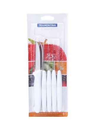 Elevate the aesthetics and functionality of your kitchen with the Tramontina Diamant 6-piece paring knife set, featuring a modern design and vibrant white polypropylene handles that infuse delicacy and joy into your culinary space. This versatile set allows you to choose the perfect knife for each culinary task, enhancing your cooking experience. The set includes six paring knives, each equipped with a stainless steel blade that has undergone thermal treatment, ensuring a long-lasting cutting edge that can withstand the demands of your kitchen. Moreover, these knives are dishwasher safe, simplifying your post-cooking cleanup and maintenance. Upgrade your kitchen with the Tramontina Diamant paring knife set and experience the