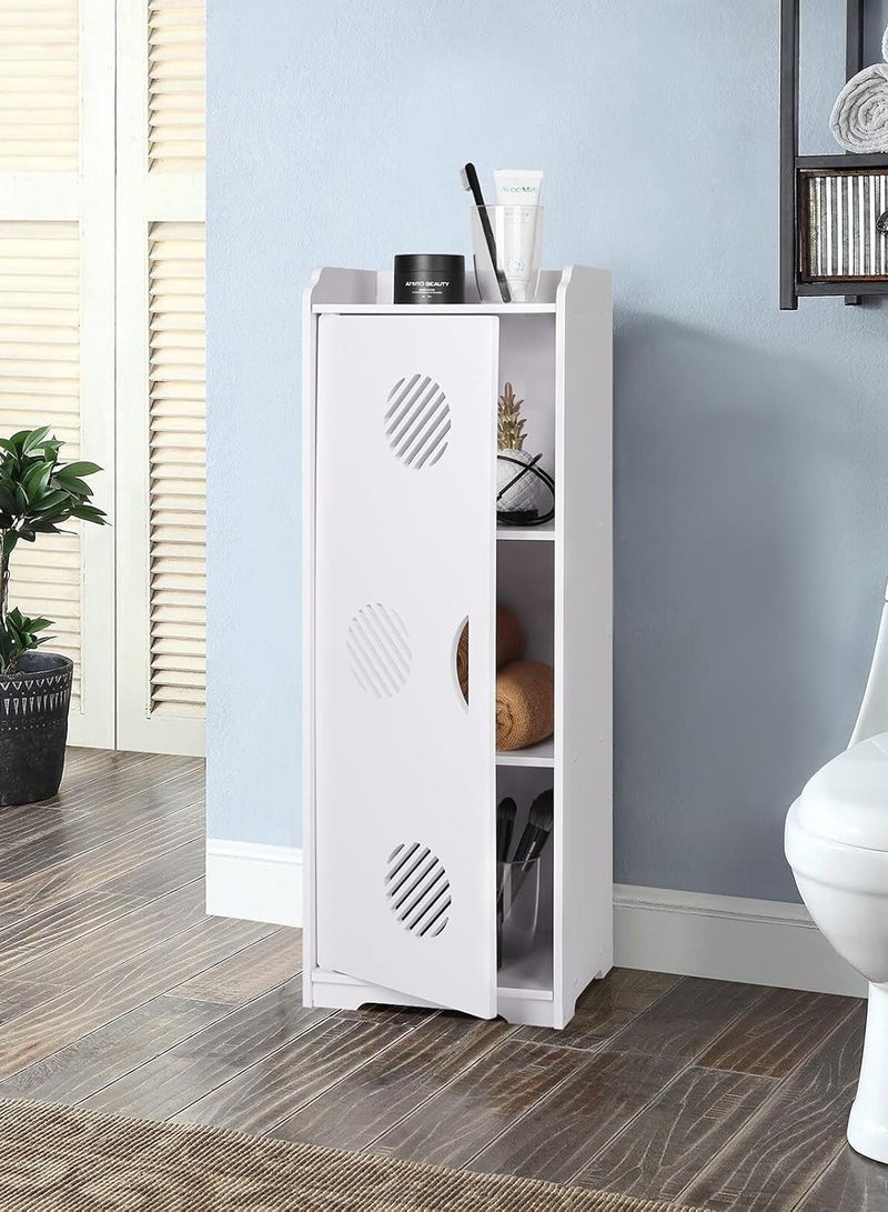 خزانة أرضية بيضاء للحمام - وحدة تخزين متعددة الاستخدامات، خزانة أثاث حمام قائمة بذاتها مع باب ورفوف لغرفة المعيشة، غرفة النوم، المطبخ