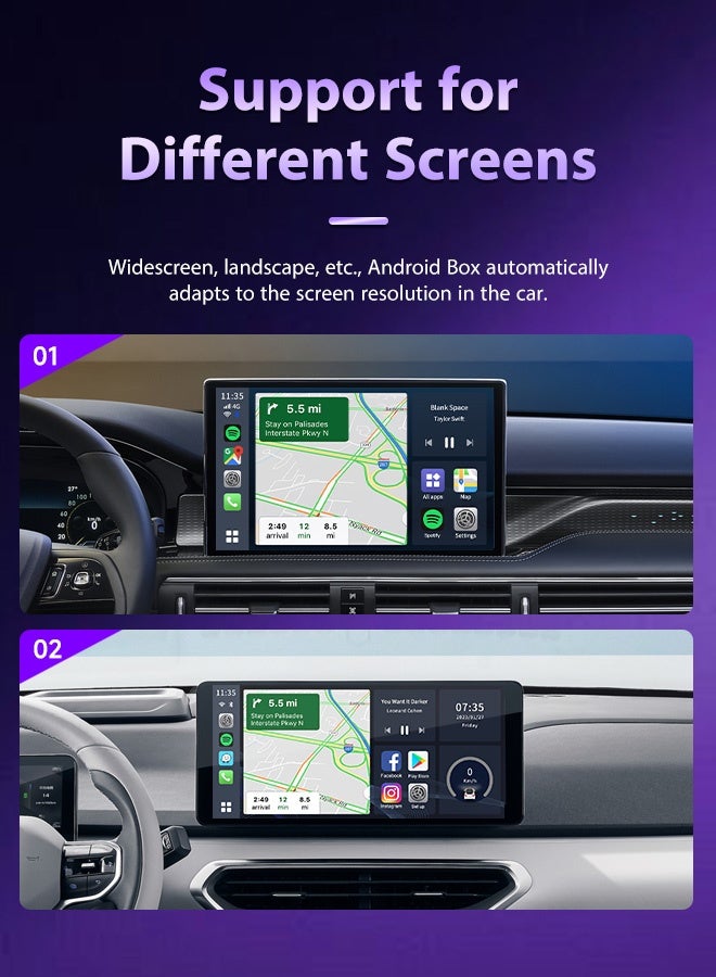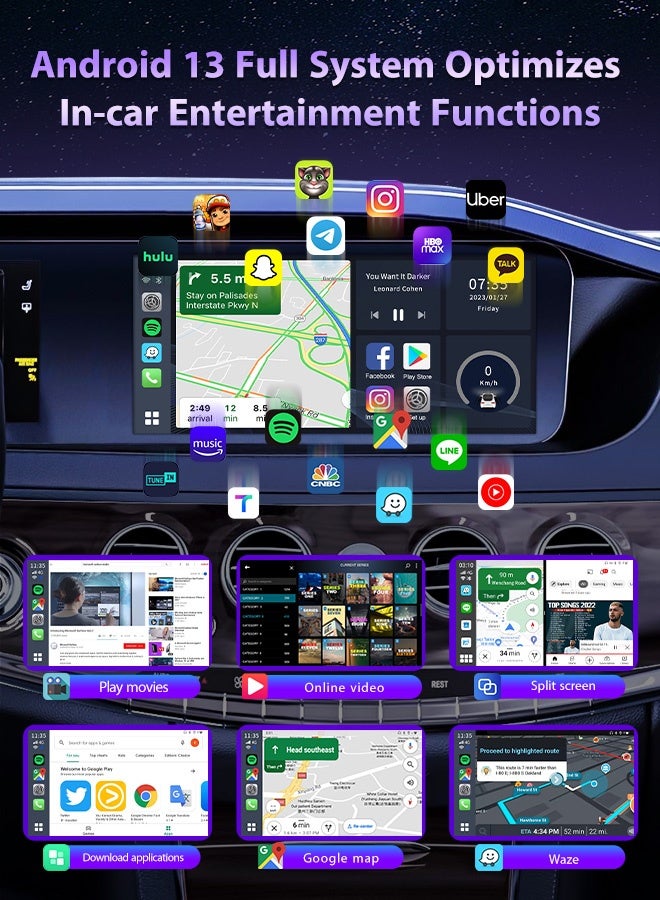يقوم الجهاز بتشغيل نظام تشغيل أندرويد 13 ، ويمكن للمستخدمين الوصول مباشرة إلى متجر جوجل بلاي على شاشة السيارة لتنزيل وتثبيت التطبيقات المختلفة ، مثل وسائط بث الفيديو ومشغلات الموسيقى والألعاب. ذاكرة 8 جيجابايت + 128 جيجابايت ، تشغيل وحدة المعالجة المركزية كوالكوم أنف العجل 6225 مربع لديه وظيفة إخراج هدمي. إخراج هدمي يسمح للمستخدمين لتوسيع محتوى عرض السيارة إلى شاشات أكبر أخرى في السيارة أو العرض في المقعد الخلفي للسيارة ، سواء كان يلعب فيلم ، ومشاهدة الفيديو أو إعطاء مظاهرة.عند السفر لفترة طويلة ، يمكن للركاب مشاهدة مقاطع الفيديو عن طريق توصيل الأجهزة لتعزيز جو الترفيه في السيارة. كاربلاي اللاسلكية وميزات السيارات الروبوت اللاسلكية يدعم الجهاز عادة اتصالات الشبكة اللاسلكية ، بما في ذلك واي فاي وبلوتوث. يمكن للمستخدمين إقران هواتفهم المحمولة بنظام السيارة بهذه الطرق لتحقيق مشاركة الملفات وتشغيل الوسائط المتعددة بسهولة. دعم تشغيل الفيديو عالي الدقة ، يمكن للمستخدمين الاستمتاع بتجربة مشاهدة فيديو عالية الجودة في السيارة ، ومناسبة للترفيه أثناء السفر لمسافات طويلة. مع المدمج في وحدة غس ، يمكن للمستخدمين استخدام تطبيقات الملاحة التقليدية أو إعداد الملاحة من خلال المساعدين الصوتيين. بسيطة وسهلة الاستخدام: واجهة الجهاز ودية وسهلة الاستخدام ، حتى المستخدمين الذين ليسوا على دراية بالتكنولوجيا يمكنهم تعلم كيفية استخدامها بسرعة. طرق متعددة للاتصال بالشبكة: 1.دعم إدراج بطاقة سيم ، يمكنك إدراج بطاقة سيم المحلية لتصفح الإنترنت 2.الاتصال بأجهزة واي فاي المحمول لتصفح الإنترنت