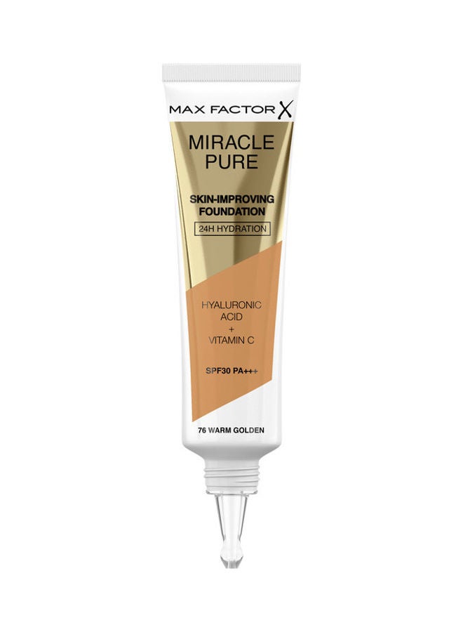 Believe in miracles! Inspired by skincare, mastered by Max Factor, the new Miracle Pure Foundation is clinically proven to care for skin while you wear it. In just one minute and with just a drop it pumps your skin, letting your complexion benefit in five ways, with improved radiance, firmness, elasticity, density, and suppleness. The advanced formula is infused with 89% skin-care ingredients including collagen-boosting complex, vitamin C and hyaluronic acid. Clinically proven to provide you with 24 hours of hydration – it will instantly plump and improve skin’s firmness and elasticity day by day. Available in 20 medium-coverage, buildable shades. SPF30PA+++ UVA/UVB and dermatologically tested.