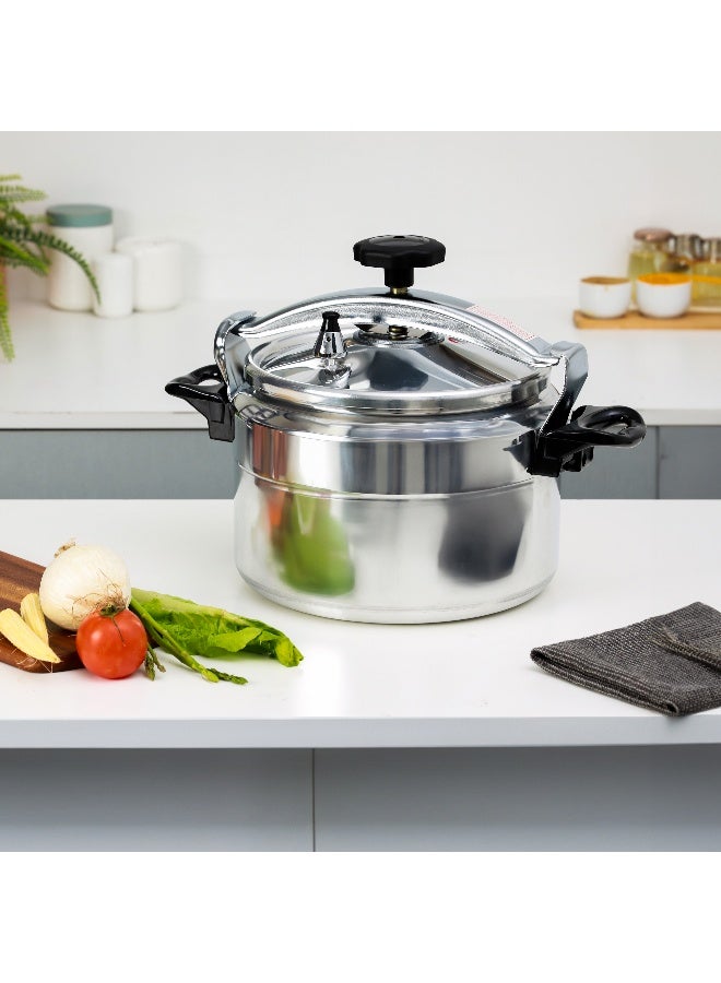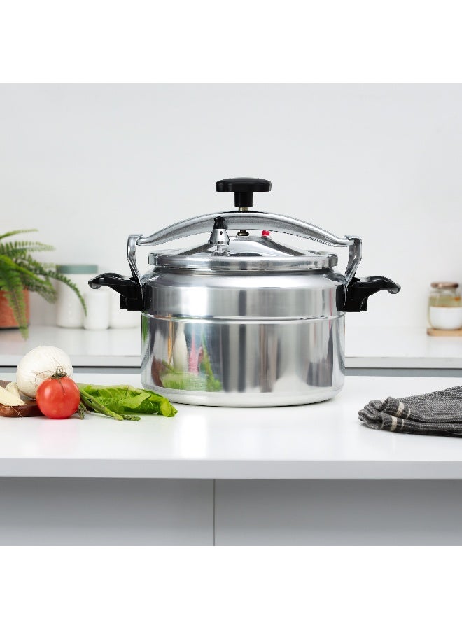 Bring home a revolutionary new cooker that completely transforms your kitchen experience. The Delcasa offers you a strong and efficient aluminum pressure cooker, making it an ideal cooking tool for today's busy lifestyle. Pressure cookers can be used for various purposes and are ideal for everyday, healthy cooking. Designed to last a long time, the cooker is made with high-quality, food-grade aluminum materials. The pressure cooker has a capacity of 15.0 liters, making it suitable for cooking for the whole family. It is ideal for both boiling and slow cooking, such as preparing rice, curries, porridge, soups, and much more. The specially designed cooker has multiple safety features, including a specially designed valve, a harmless silicone ring, and a clip-on lid to ensure a safe cooking experience. The specially designed valve ensures quick and safe cooking, thus saving you time. The handle is ergonomically designed to provide a firm and comfortable grip, even with wet hands. It is strong and riveted to withstand the weight while lifting the cooker. In addition to being hygienic, the cooker ensures maximum safety. The pressure cooker ensures uniform heating and an even distribution of heat. The cooker is designed to work with gas, hotplate, ceramic, and halogen stovetops. This cooker is made from eco-friendly materials, uses less energy, and saves time in the kitchen. It is also user-friendly. A premium-quality aluminum pressure cooker makes a great gift for housewarmings, anniversaries, farewells, etc.