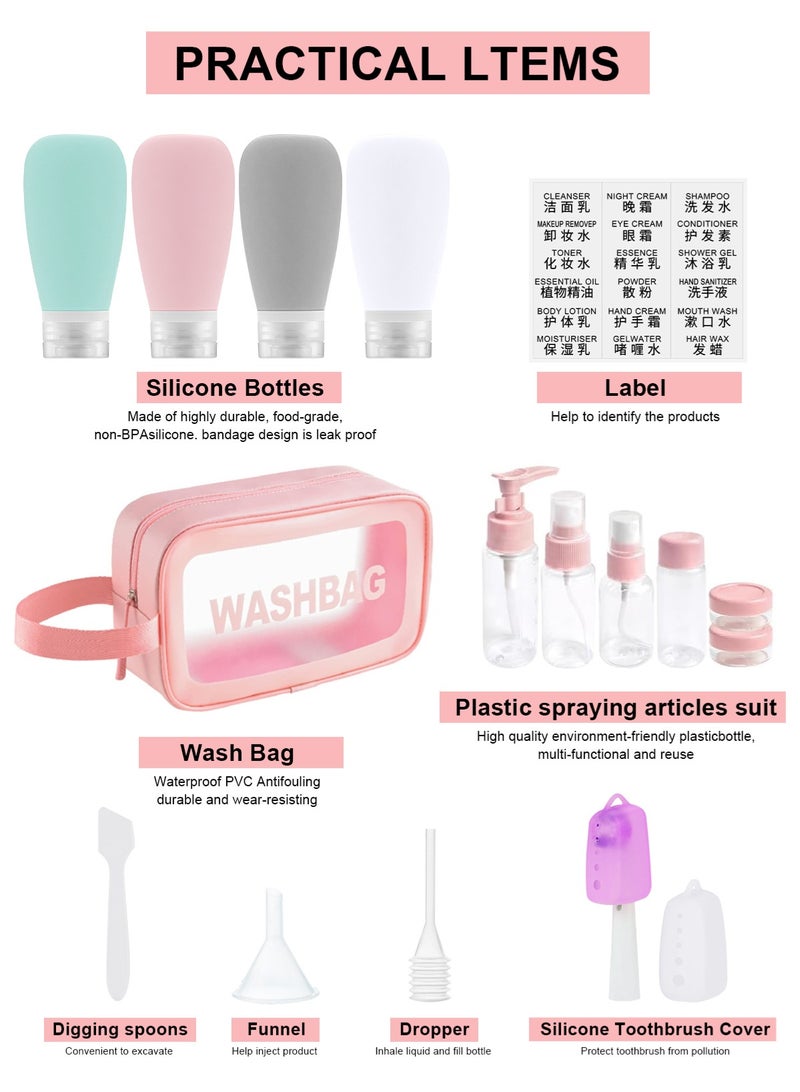 18pack Travel Bottles for Toiletries,TSA Approved Silicone Travel Containers jar for Toiletries,Leak Proof Refillable Liqus Shampoo And Conditioner Travel Essentials toiletry Bottles