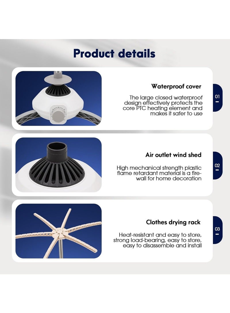 Our Indoor Electric Clothes Dryer adopts PTC heating material, which can quickly heat up, dry the moisture of the clothes, quickly take away the moisture of the clothes, 360° three-dimensional heating, convection drying, mild conductive flow does not harm the clothes, so that the heat is uniform, penetrate the internal fibers, and give you high-quality drying effect.