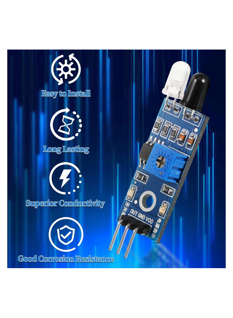 Our 20Pcs IR Infrared Obstacle Avoidance Sensor Modules are constructed with high-quality electronic components, featuring a nickel-plated surface that enhances oxidation resistance and conductivity. This ensures longevity and reliability for all your Arduino robotics projects.