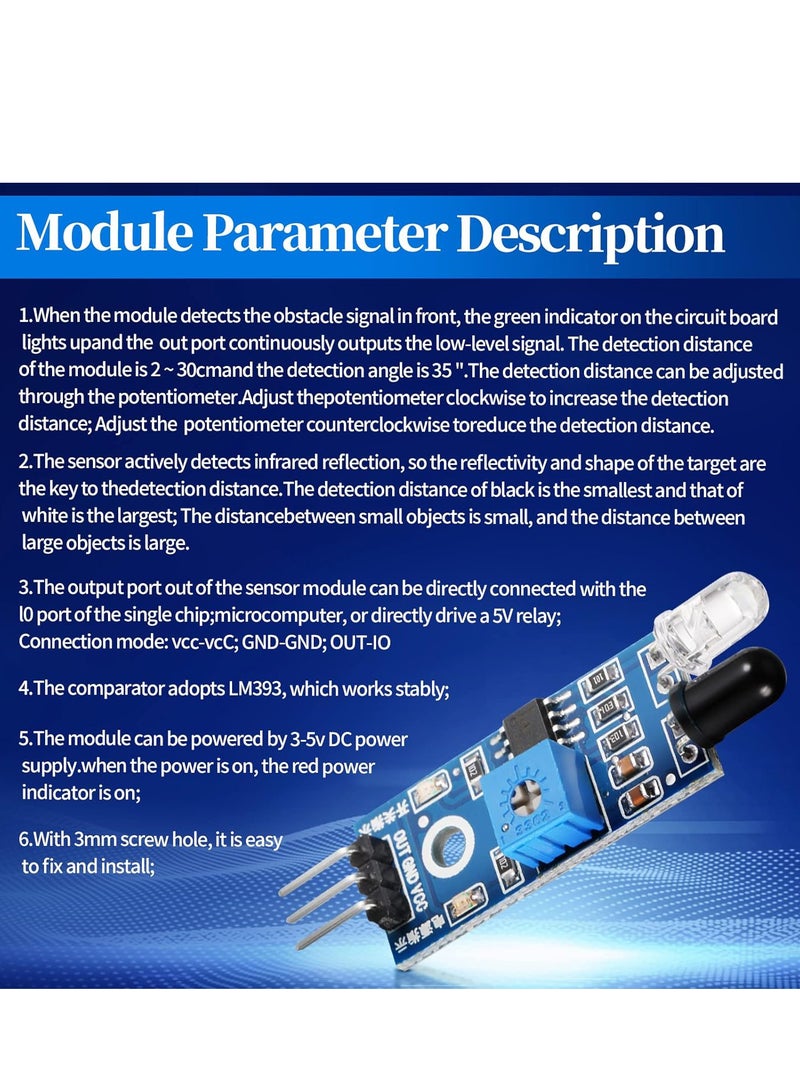 Our obstacle avoidance sensors are designed to minimize interference, ensuring accurate distance detection. The user-friendly assembly process allows you to get your projects up and running quickly, making it perfect for both beginners and experienced hobbyists.