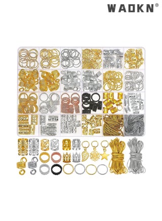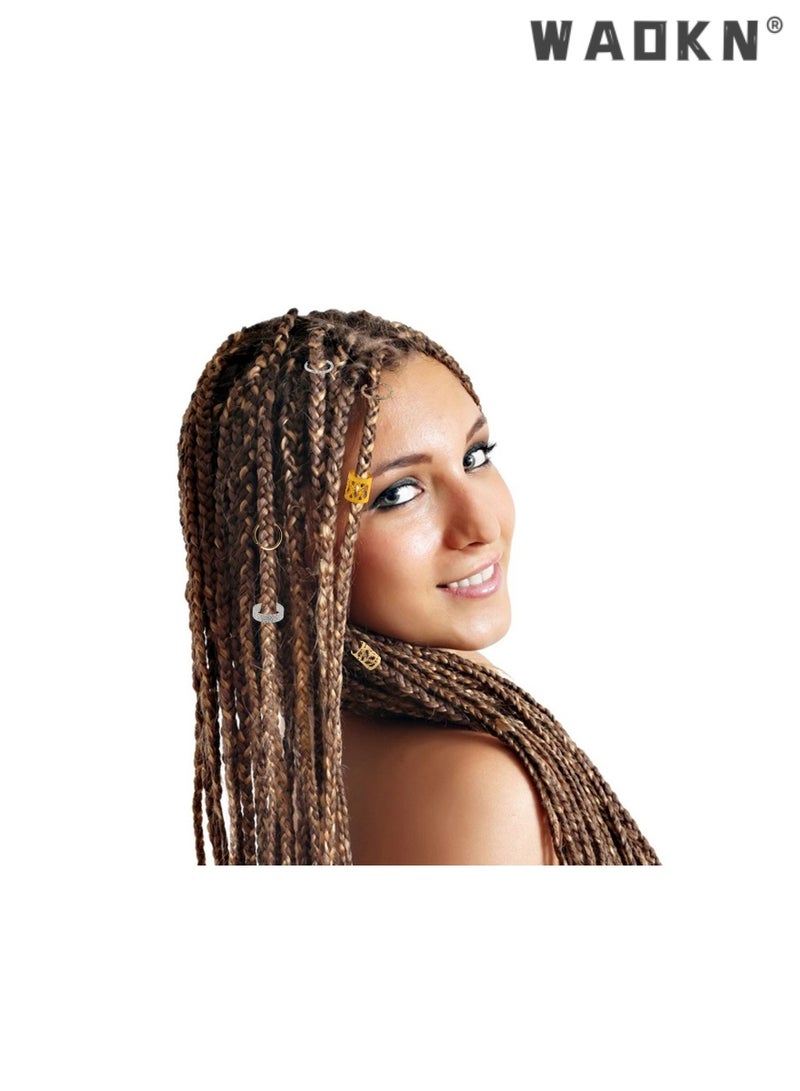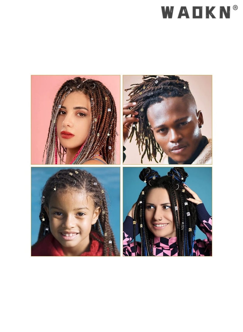 259 PCS Hair Jewelry Accessories for Women or Men Braids, Hair Rope Metal Crown Hollow Rao Rope Ring, Hair Aluminum Beads Charms Gold Braids Ring Cuffs Clips with Pendants for Hair Decorations