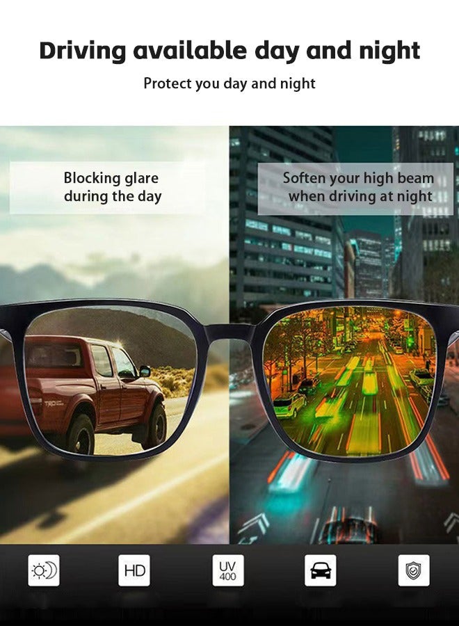 DAY AND NIGHT USE: During the day, the lenses block UV rays, shade the sun, and reduce glare, giving you a clearer vision. At night, they help reduce the impact of high beams and illuminate your field of vision, enhancing safety and visibility