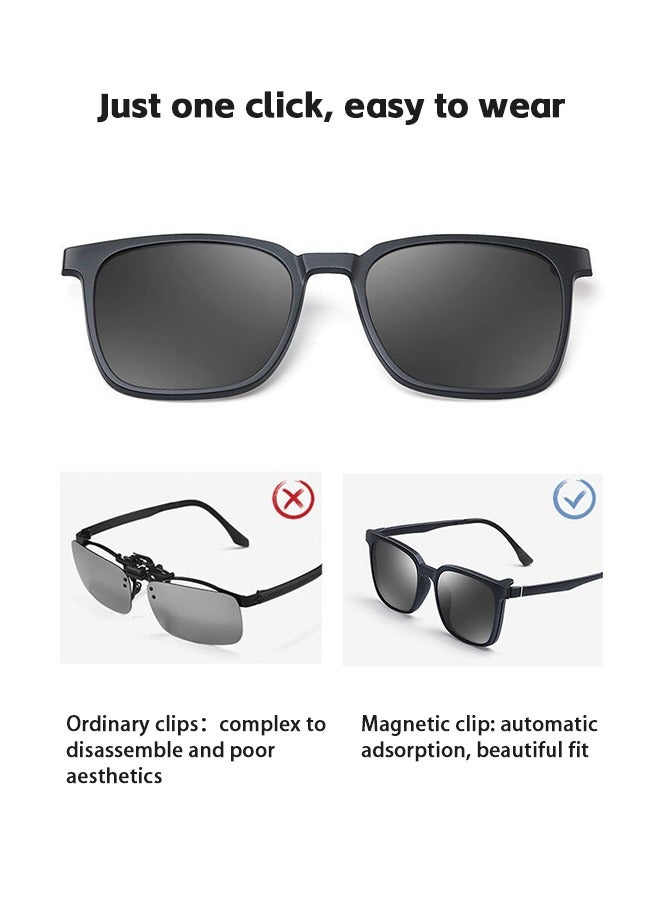 3 In 1 Magnetic Polarized Clip-On Sunglasses Set, Blue Light Blocking Glasses with Magnetic Polarized Lenses and Magnetic Night Vision Lenses, Versatile Glasses for Men and Women for Day and Night