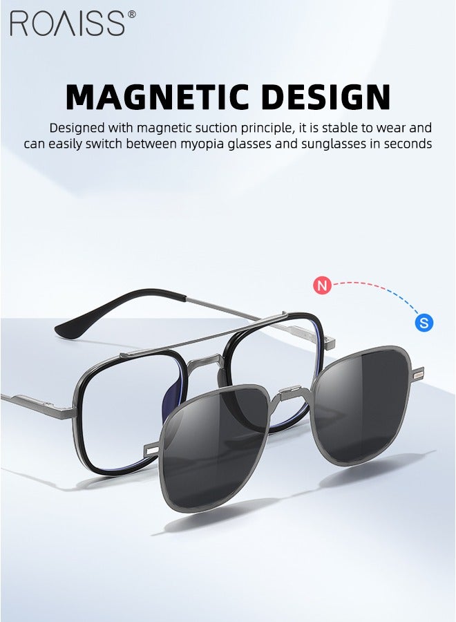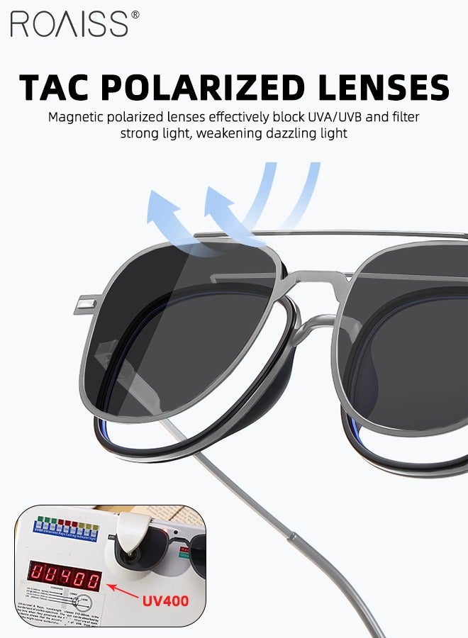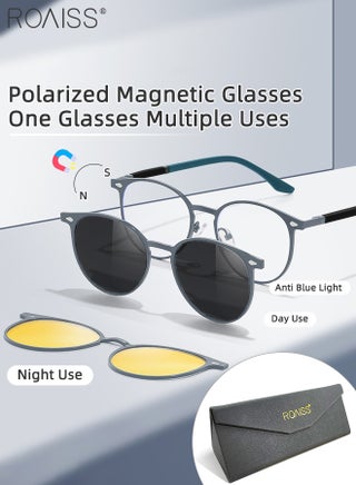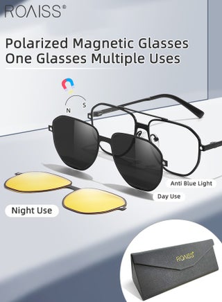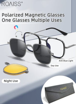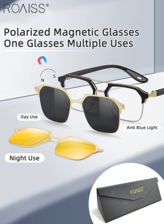 3-in-1 Magnetic Polarized Foldable Clip-On Sunglasses Set, Blue Light Blocking Glasses with Magnetic Polarized Lens and Magnetic Night Vision Lens, Versatile Driving Eyewear for Men