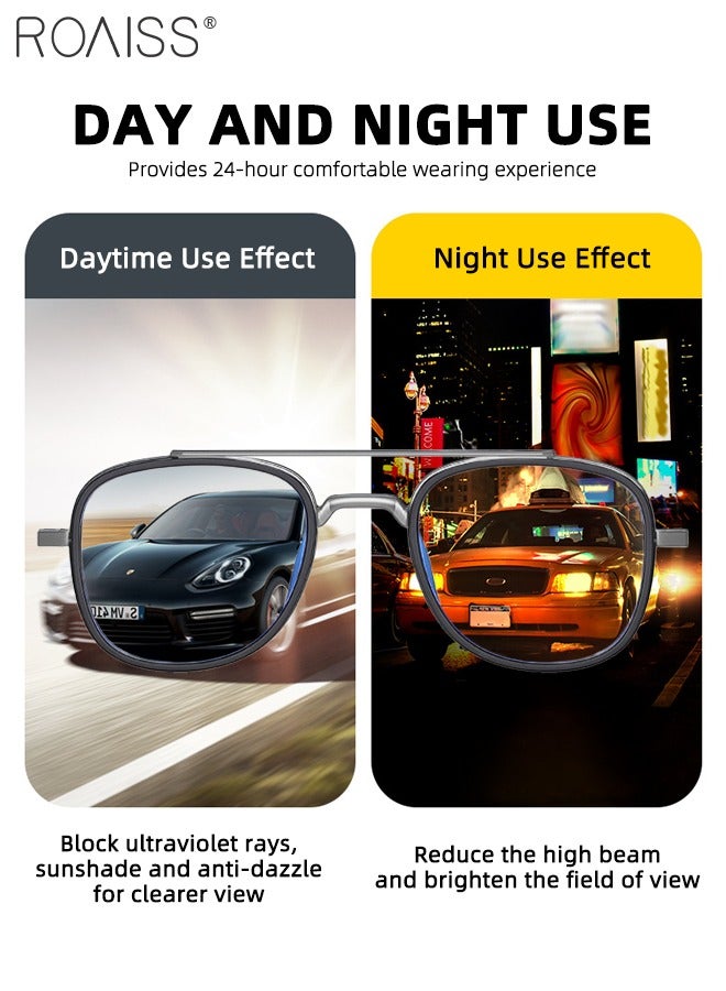DAY AND NIGHT USE - During the day, the lenses block ultraviolet rays, provide sunshade, and reduce glare for a clearer view. At night, they help reduce the impact of high beams and brighten your field of view, enhancing safety and visibility.