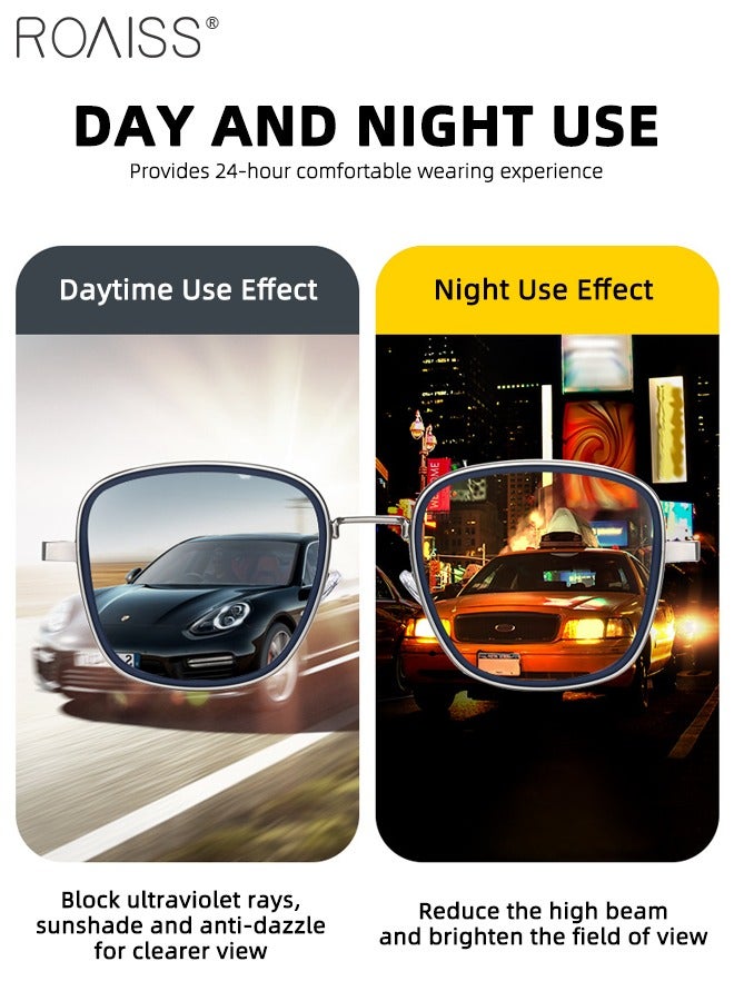 DAY AND NIGHT USE - During the day, the lenses block ultraviolet rays, provide sunshade, and reduce glare for a clearer view. At night, they help reduce the impact of high beams and brighten your field of view, enhancing safety and visibility.