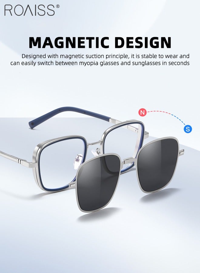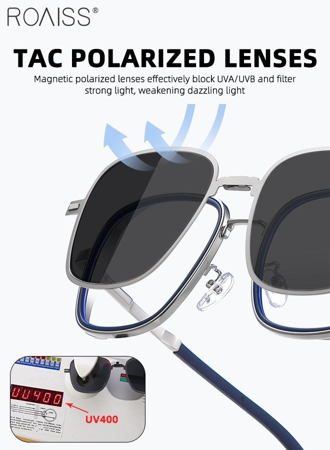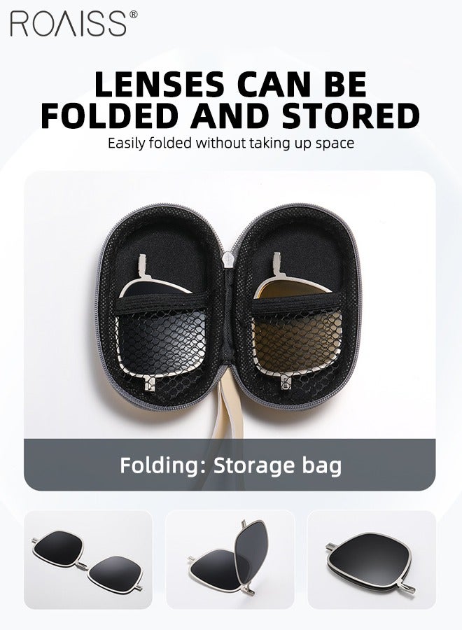 3-in-1 Magnetic Polarized Foldable Clip-On Sunglasses Set, Blue Light Blocking Glasses with Magnetic Polarized Lens and Magnetic Night Vision Lens, Versatile Eyewear for Men with Glasses Case