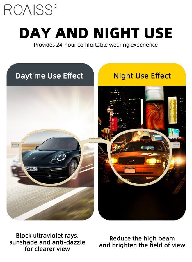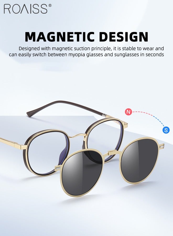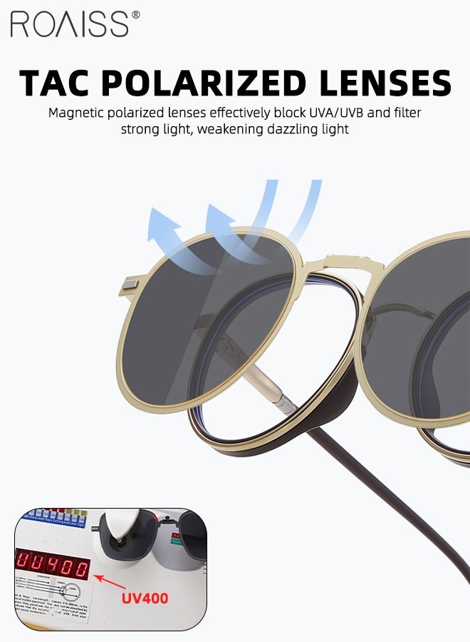 3-in-1 Magnetic Round Polarized Foldable Clip-On Sunglasses Set, Blue Light Blocking Glasses with Magnetic Polarized Lens and Magnetic Night Vision Lens, Versatile Eyewear for Men with Glasses Case
