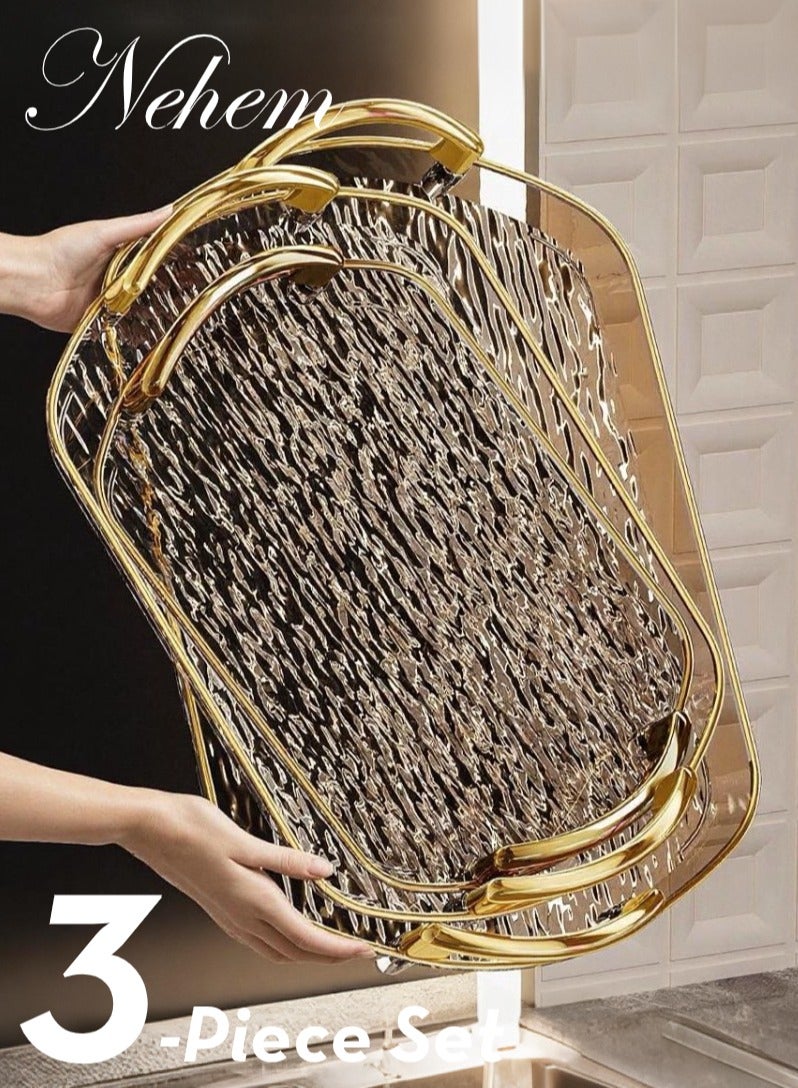 Indulge in the art of sophisticated serving with the Nehem 3-Piece Ripple Tray Set – where avant-garde design meets unwavering durability. Crafted for discerning hosts, each tray features our signature glacier texture, capturing light like ice crystals to transform ordinary snacks into stunning culinary presentations.