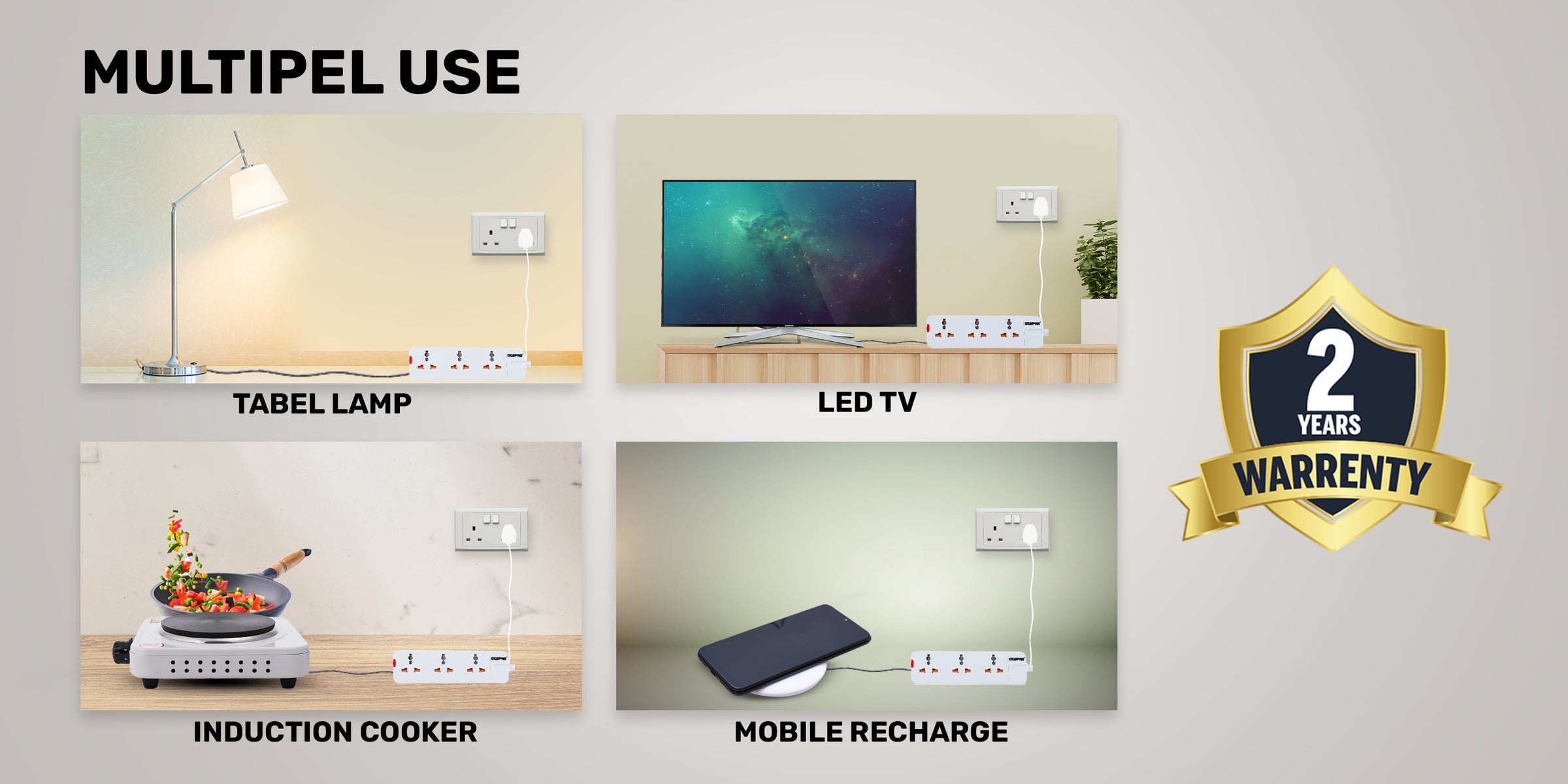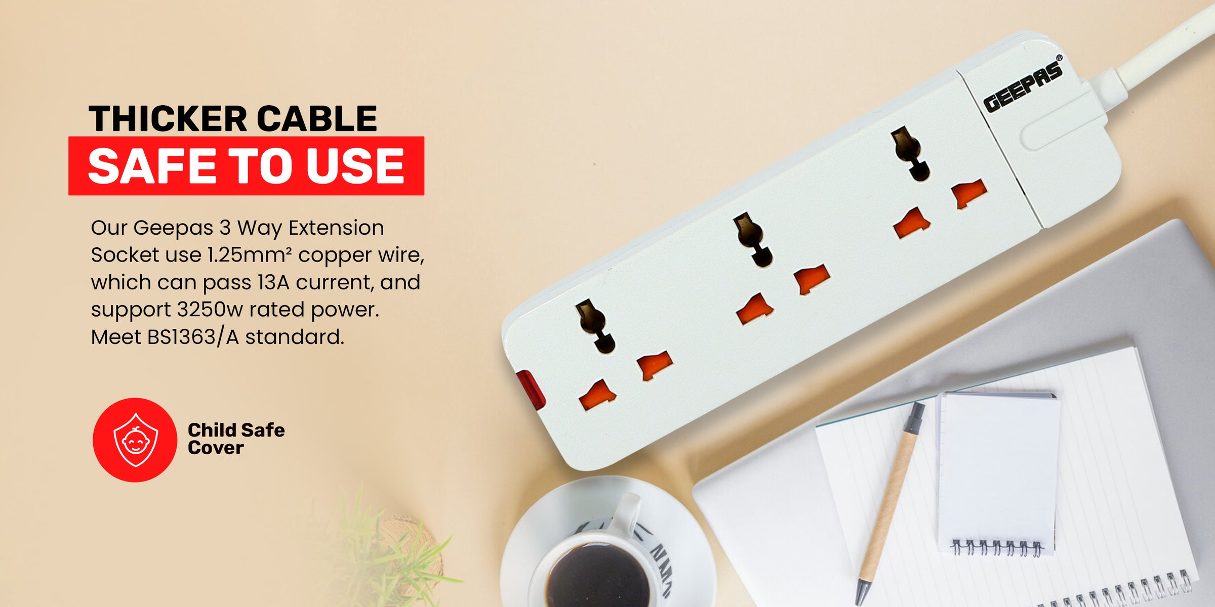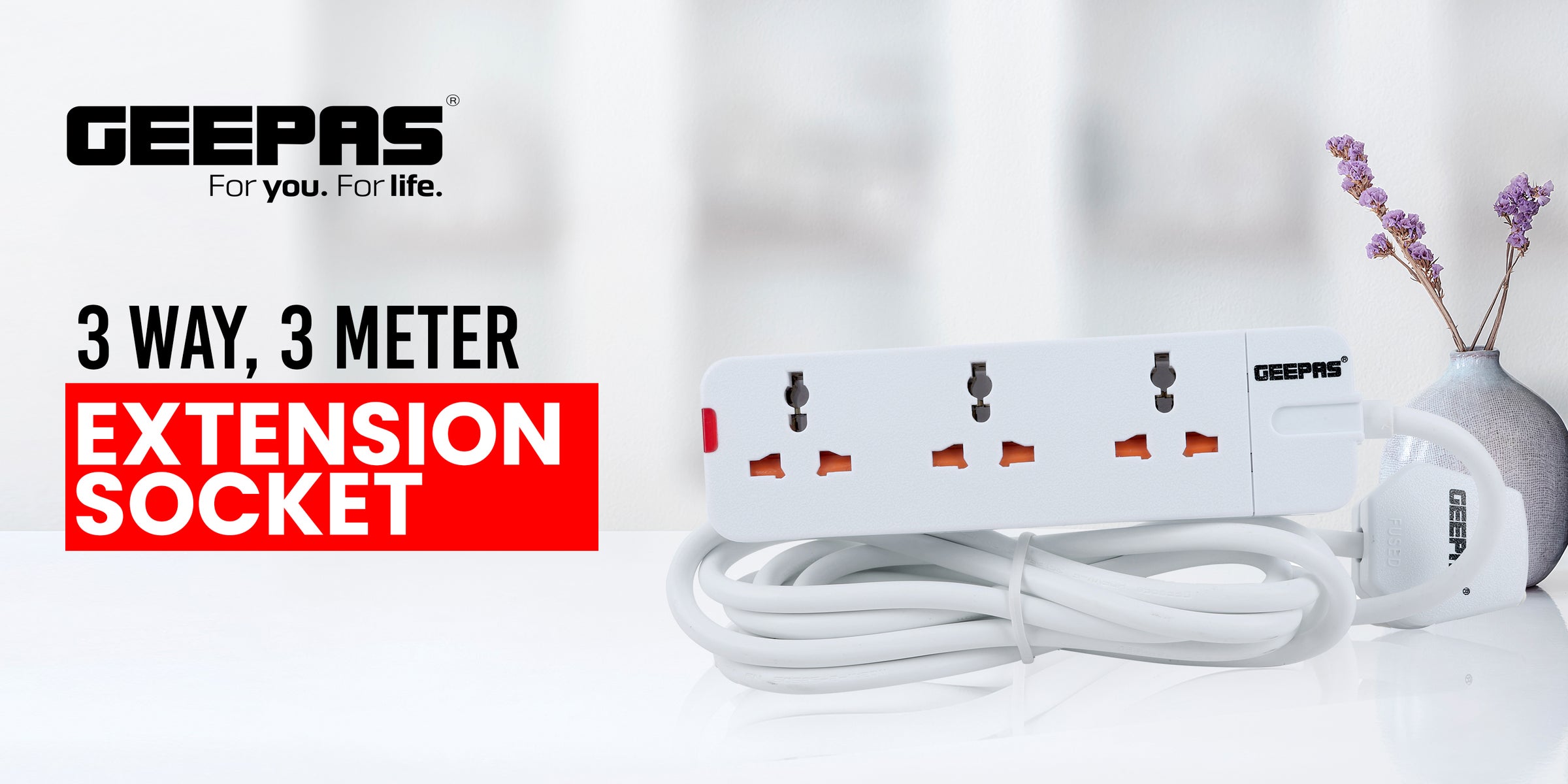 This Geepas 3 Way Extension Socket/Strip is damage-resistant and fireproof housing protects circuits from fire, impact or rust, and prevents dents and scratches. The built-in power indicator light makes it easy to know its ON/OFF mode. Compatible for connecting various devices like washing machines, Iron boxes, TV, Hair Dryer, Mobile, Drill machines, Printer, Computer, Refrigerator, Vacuum cleaners and more.