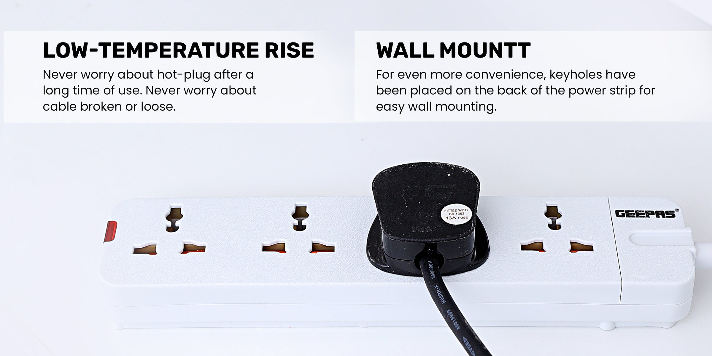 1. PREMIUM PROTECTION FOR YOUR ELECTRONICS -The Geepas strip features high-quality construction and a durable design with damage-resistant housing that protects circuits from fire, impact, and rust. Three protected AC outlets make this surge protection strip an ideal solution for home offices, media rooms, and other areas where multiple devices need to be connected.