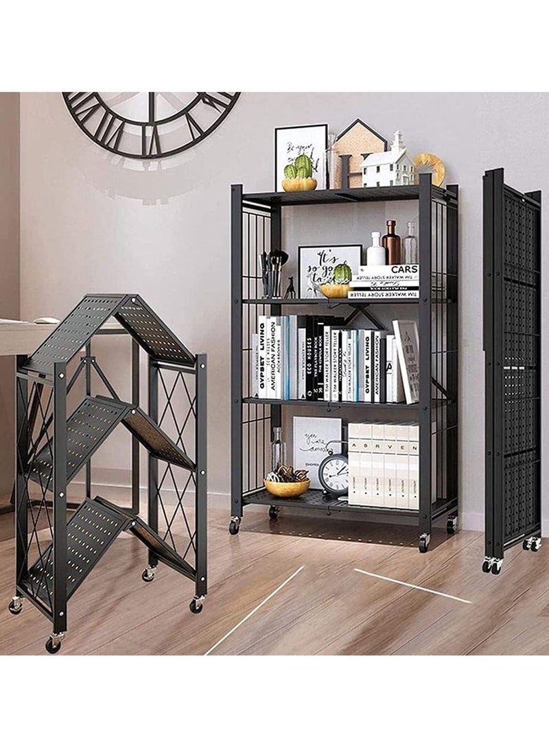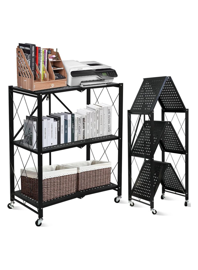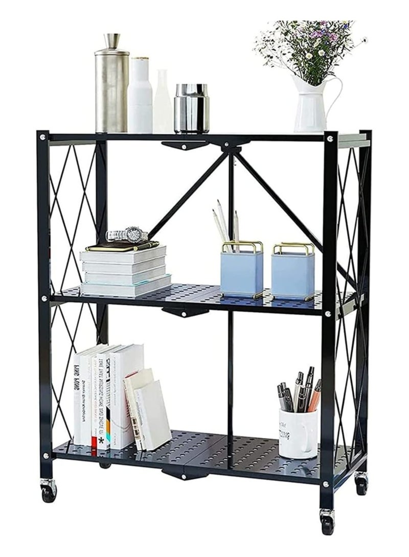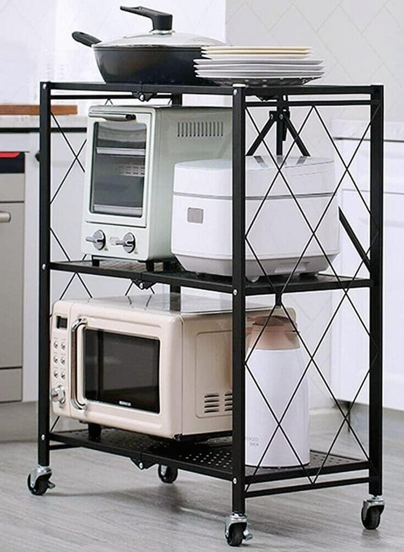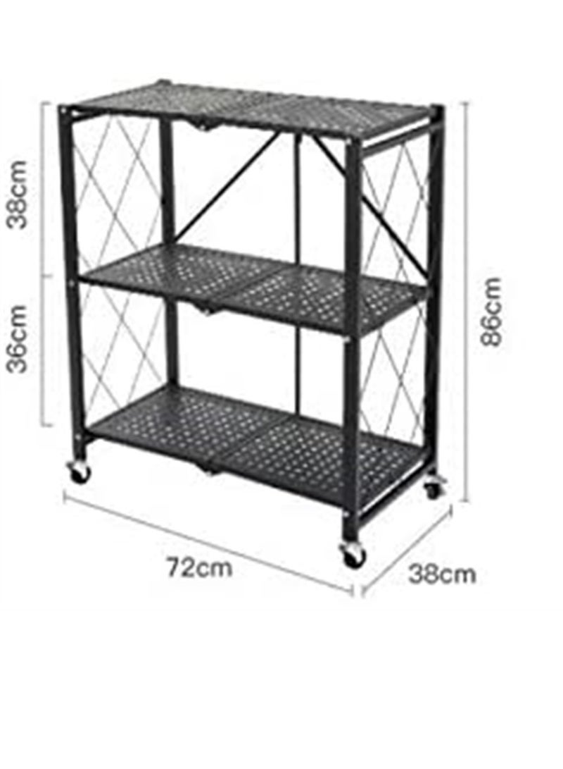 3Tier Foldable Standing Storage Rack Shelf Unit With Wheel for Kitchen Garage Home Closet Office Heavy Duty Shelves Black