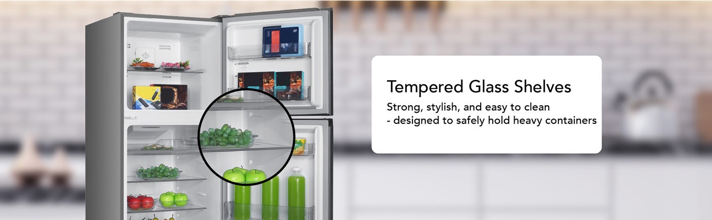 Glass Shelves Tempered: Durable tempered glass shelves provide a sturdy and easy-to-clean surface. Designed to safely hold heavy items while adding a sleek, modern look.