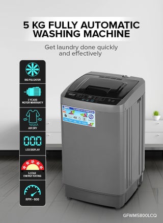 "The Geepas fully automatic top-load washing machine offers the utmost in convenience, effectiveness, and performance. The washing machine is made of premium materials and is durable with Air Dry Function, Digital Display, Automatic Imbalance Control.