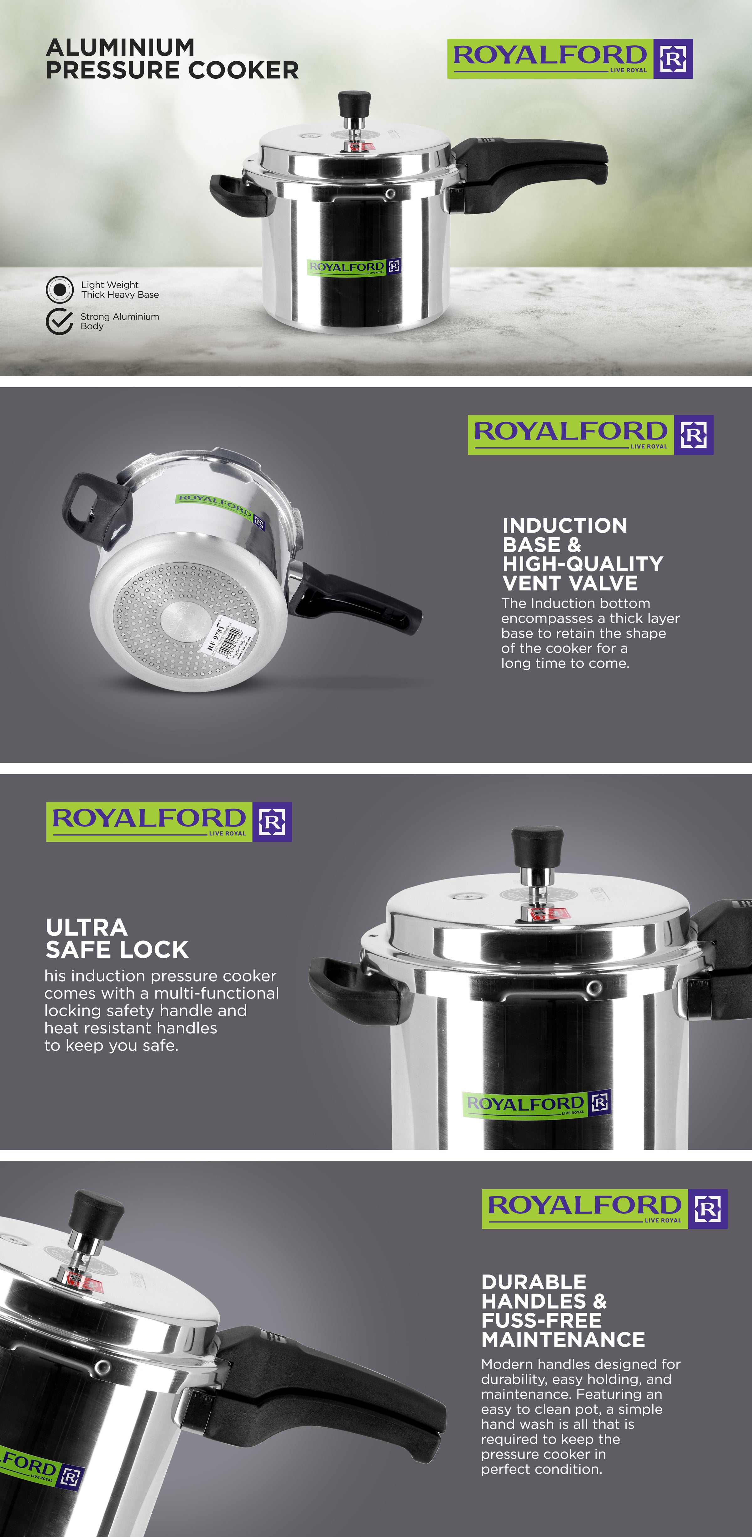 | Model Name | Royalford 5.0 Ltr Aluminum Pressure Cooker |