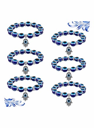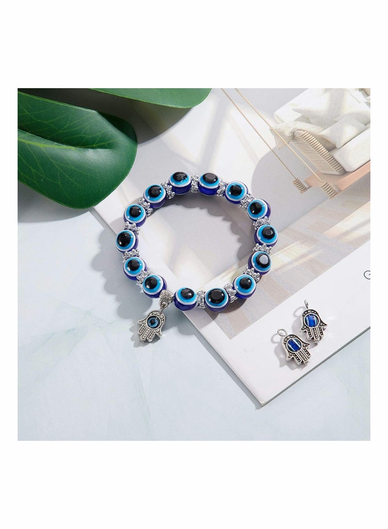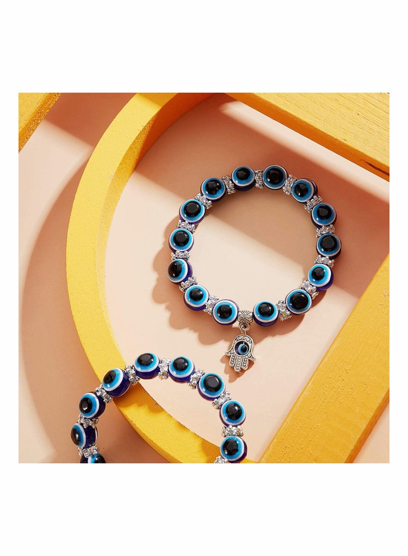 6 Pieces Eye Beaded Charm Bracelets Blue Eye Bead Stretch Bracelet Hand of Fatima Turkish Lucky Bracelet for Women Men for Protection and Blessing (Blue, 8 mm, 10 mm)