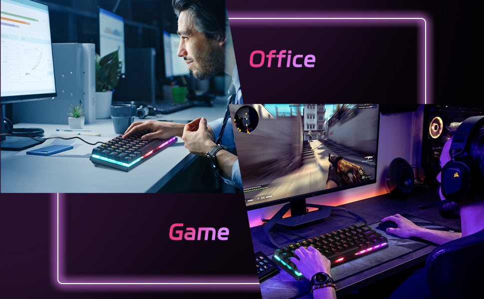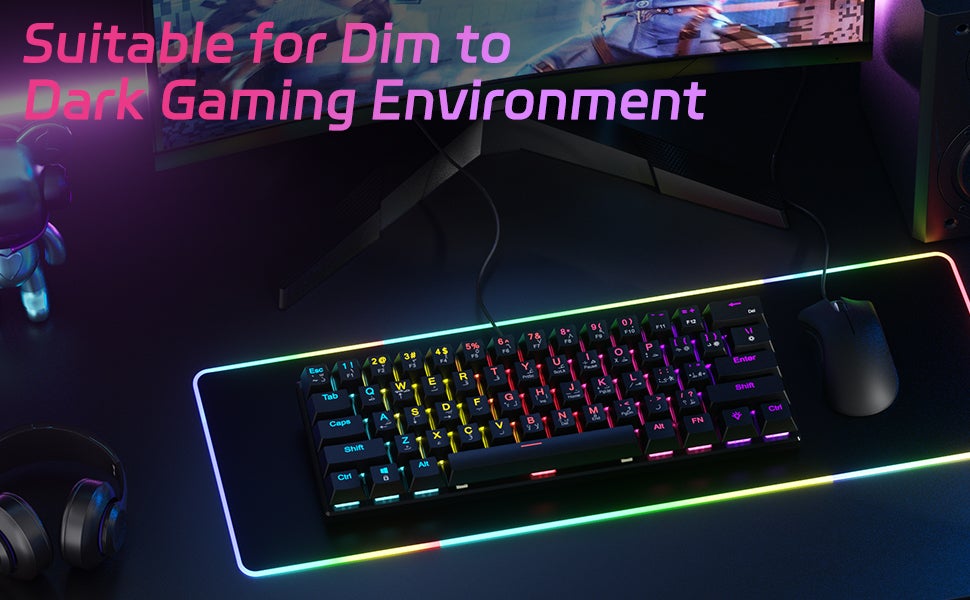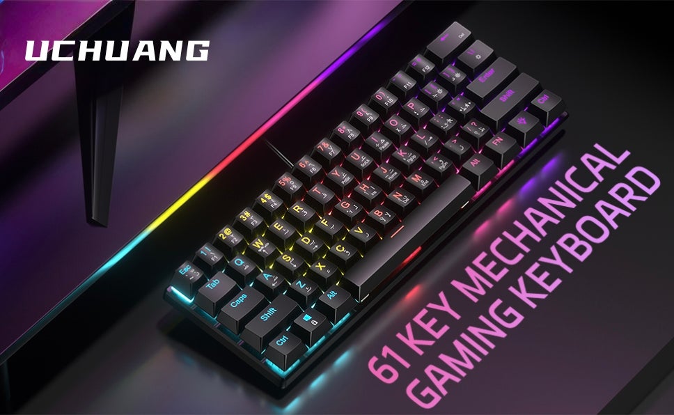 BD61 MECHANICAL KEYBOARD:compact 60% key layout, exquisite body size, adjustable mixed LED lighting, beautiful and practical, compact and simple design, freeing up valuable desktop space and reducing clutter. The UCHUANG wired keyboard adopts a USB 2.0 interface, plug and play, and does not require drivers or software.