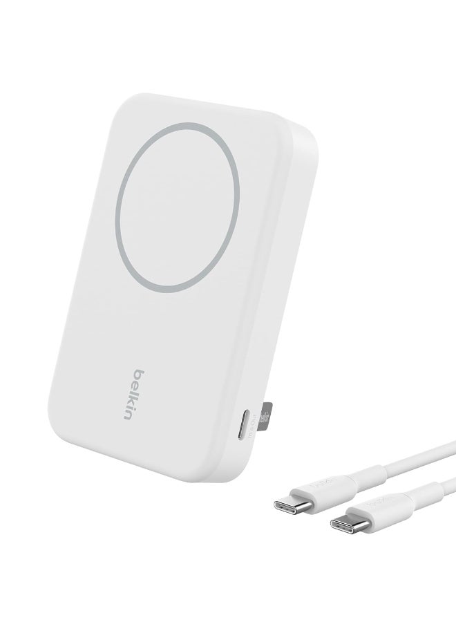 8000 mAh Belkin BoostCharge Pro Wireless Power Bank with Qi2, MagSafe Compatible Portable Charger + Built-in Pop-up Kickstand - For iPhone 16, 16 Plus, 16 Pro, 16 Pro Max, iPhone 15, and More - White