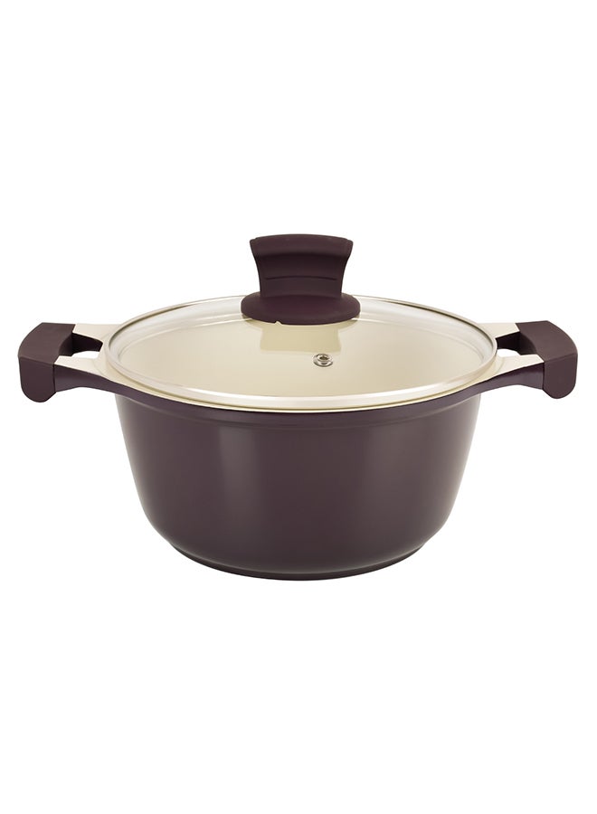 9-Piece Ceramic Design Bakelite Handle With Soft Touch Non Slip Cookware Set Includes 2xCasseroles 26 cm, 20 cm, 1xSaute Pan 24 cm, 1xFrypan 24 cm, 2xTurner, 3xGlass Lids Purple 24cm