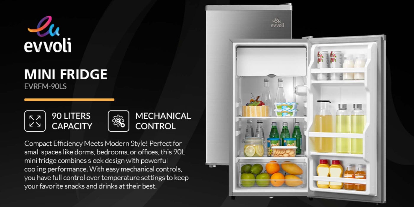 Experience a new level of kitchen convenience and efficiency with the Evvoli 90L Single Door Mini Refrigerator. Crafted with precision and innovation, this refrigerator combines sleek design with advanced functionalities to meet all your refrigeration need.