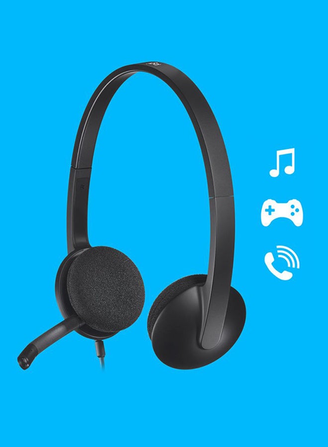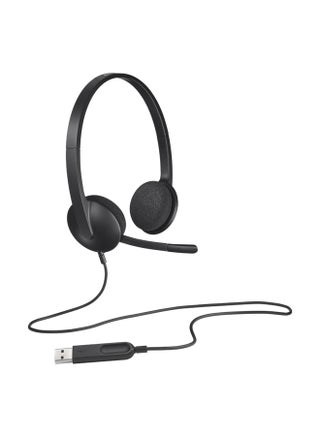H340 USB Headset, Plug And Play, Noise Cancelling Microphone, USB Type A, Adjustable Headband - Black