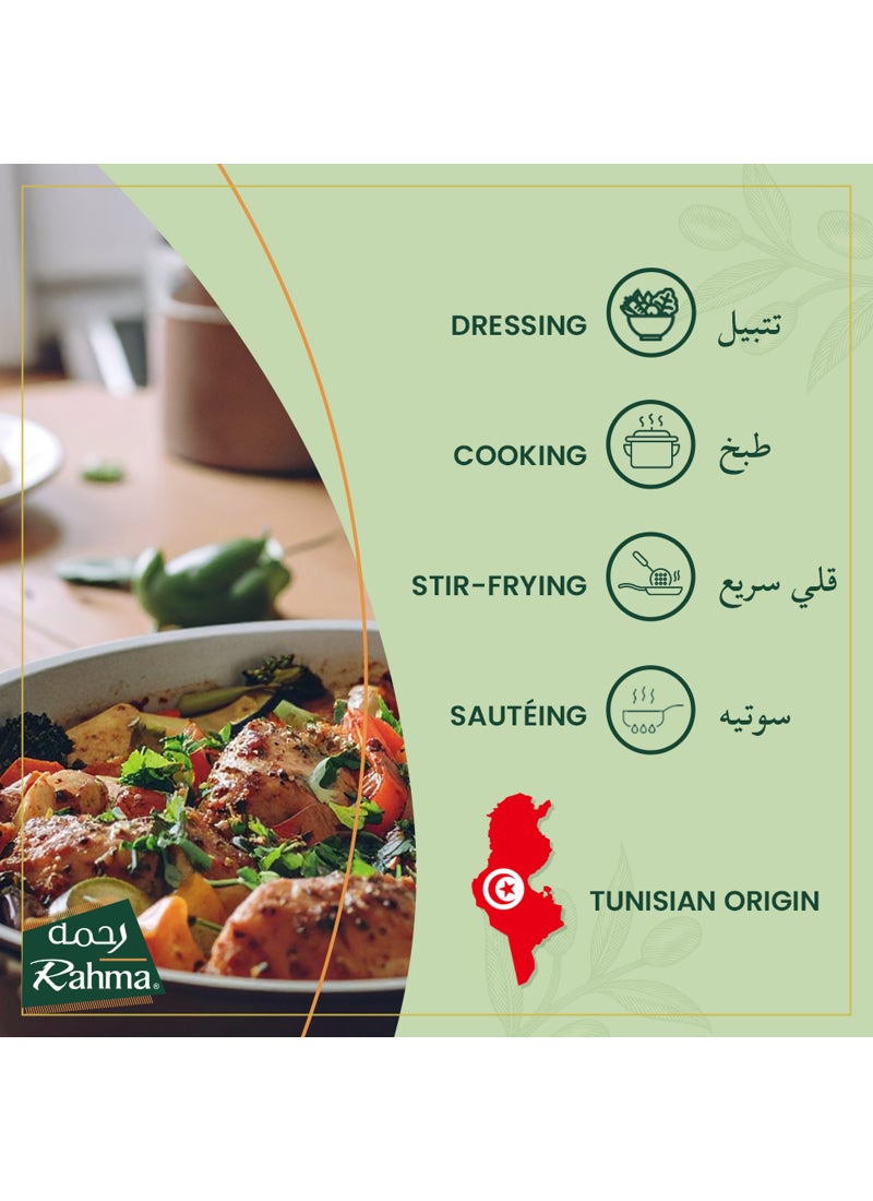 Make your favorite salad or Italian cuisine with the Rahma Extra Virgin Olive Oil. This extra virgin olive oil adds the perfect taste and offers nutritional value to your dishes.