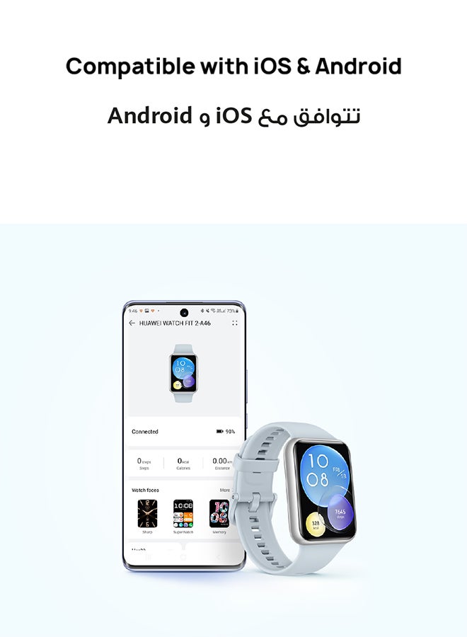 HUAWEI WATCH FIT 2 Smartwatch comes with 1.74-inch AMOLED HUAWEI FullView display, 72.2% screen-to-body ratio, 18.6% larger display area, Bluetooth calling, Quick message replies, Automatic SpO2 monitoring, Accurate heart rate monitoring, HUAWEI TruSleep 2.0 sleep monitoring, HUAWEI TruRelax stress tracking, Healthy living management, 10-day durable battery life for typical usage, Quick-workout animations, 97 workout modes, Five-system GNSS and route back, Independent music playback, Voice assistant, AOD and Watch Face Store, press-to-release Link design.