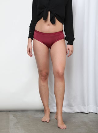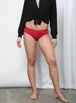 Bikini panties can be form-fitting or loose. Typical components include an elastic waistband, a crotch panel to cover the genitalia (usually lined with absorbent material such as cotton), and a pair of leg openings that, like the waistband, are often made of elastic. Various materials are used, but are usually chosen to be breathable.Bikini Panties are made of a variety of materials, including cotton, lace, latex, leather, lycra, mesh, nylon, PVC, polyester, rawhide, satin, and silk. Construction typically consists of two pieces (front and rear) that are joined by seams at the crotch and sides; an additional gusset is often in the crotch, with the waistband and leg-openings made from elastic. It is well-crafted from quality fabric to provide a comfortable fit and skin-friendly feel. Moreover, it features tie-up detail on either side. Well-designed with a modern style, this pair of bikini briefs will be a delight in your resort wear collection.