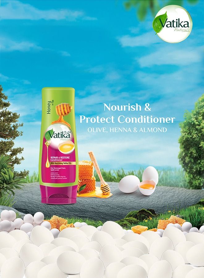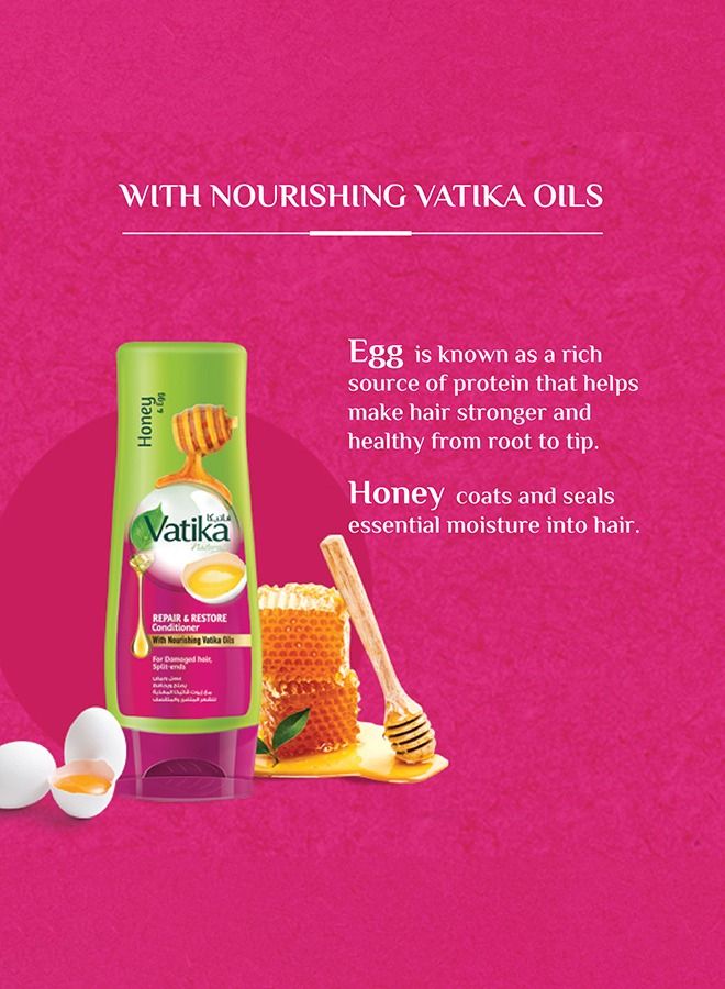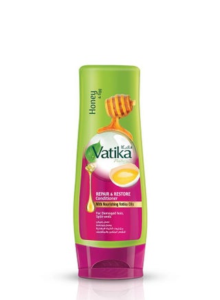 Do Split-ends and Damaged hair bother you? The Vatika Naturals Repair & Restore Conditioner with the goodness of natural ingredients namely Egg and Honey is the perfect solution for Damaged hair. The hair repair conditioner is enriched with Vatika Oils and it's an herbal recipe, the product intensely nourishes your hair from the root to tip and replenishes moisture. For best results, use the conditioner after gently rinsing your hair with the Vatika Naturals Repair and Restore Shampoo enriched with the goodness of honey and egg!