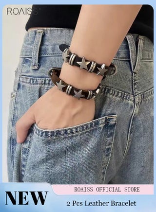 • Package content: 1 piece of black cowhide alloy pentagram bracelet; One brown cowhide alloy pentagram bracelet.