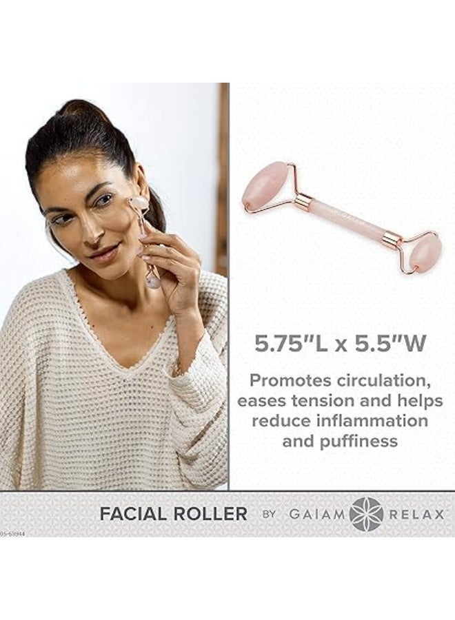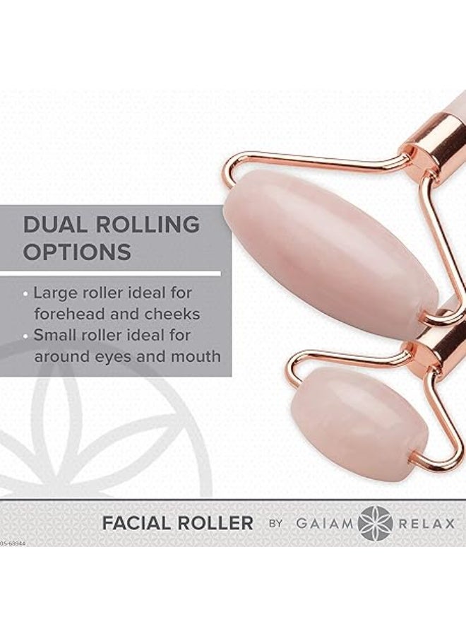 Stimulate collagen production and roll out worry with our dual-ended rose quartz–colored facial roller. Designed with large and small facial rollers to target different areas of the face, neck and chest, it helps increase circulation, release tension and naturally cool to reduce puffiness. - Smooth rose quartz facial roller - Dual rolling options - Large roller ideal for forehead, cheeks - Small roller ideal for around eyes and mouth - Promote circulation, ease tension, reduce inflammation