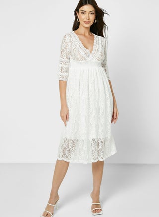 This lace dress with slight twist adds some oomph to your casual everyday look.