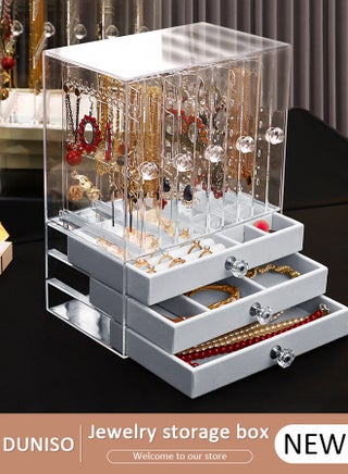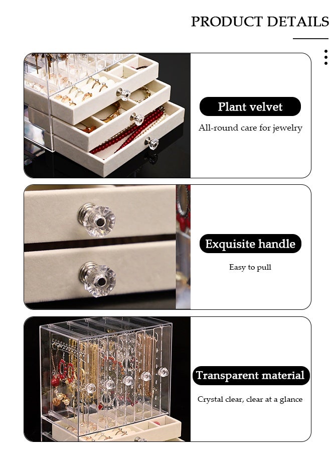 Acrylic Jewelry Box, Clear Jewelry Organizer, with 4 Drawers & 2 Earring Holder, Dustproof Velvet Jewelry Display Case, For Bracelet Necklace Rings Storage, for Jewelry Storage and Display Gift