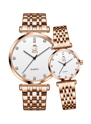 Expertly designed for couples, the Gsquare Analog Quartz White Dial Stainless Steel Watch Set - 5596 boasts a high hardness coated glass mirror and durable stainless steel band. With a precise quartz movement and 30 meter depth waterproof feature, this set is perfect for everyday wear and long-lasting style.